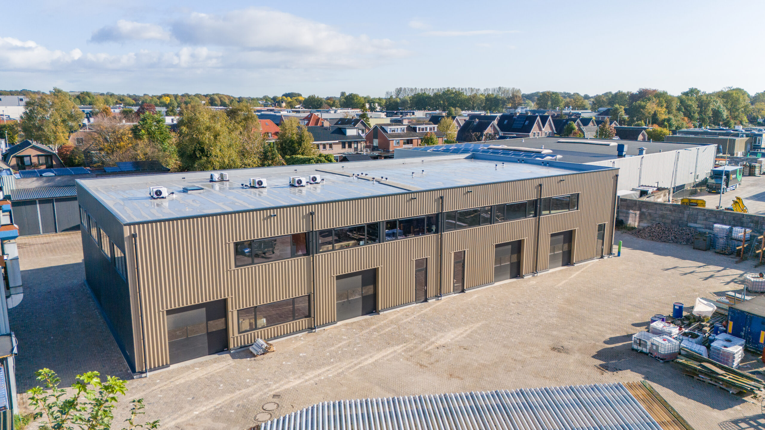 ,,Het is leuk om de bouw met elkaar te zien vorderen’’, zegt directeurbestuurder Wilma Gorissen terwijl ze naar de nieuwe hal loopt. Die is gebouwd achter hun huidige pand aan de Valkseweg in Barneveld. Ons Bedrijf gaat voorlopig bijna de helft gebruiken. ,,Onder meer de productieploeg gaat hier werken. De afdeling groeit uit z’n jasje. De mensen zitten te krap.’’